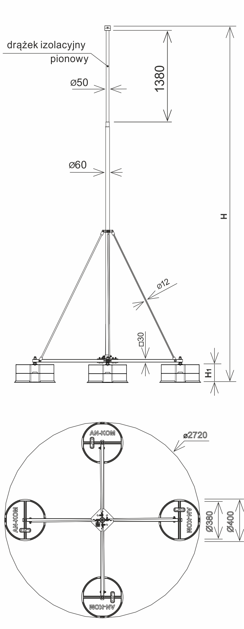 Maszty - iglice MASZTY DO PW aluminiowe na trójnogu izolowane do PW