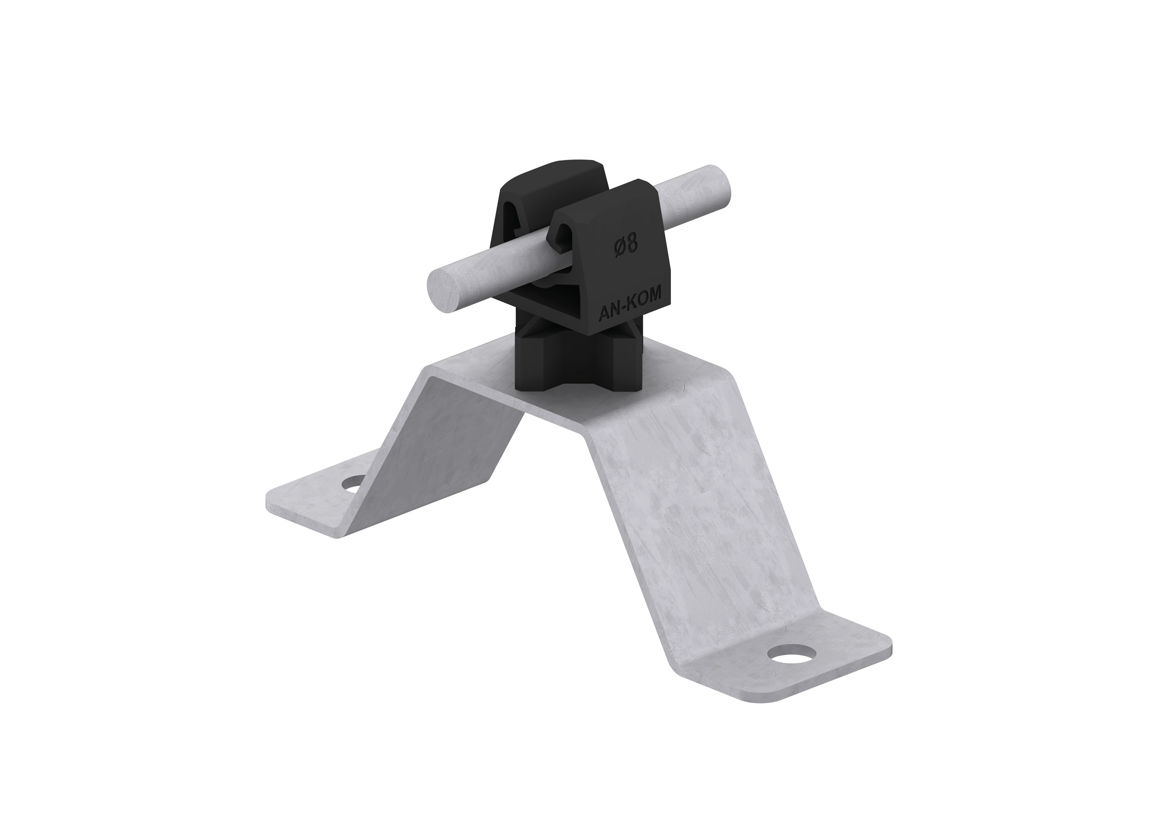 Uchwyt uniwersalny do prowadzenia przewodu odgromowego na dachu pokrytym blachą, papą, gontem.