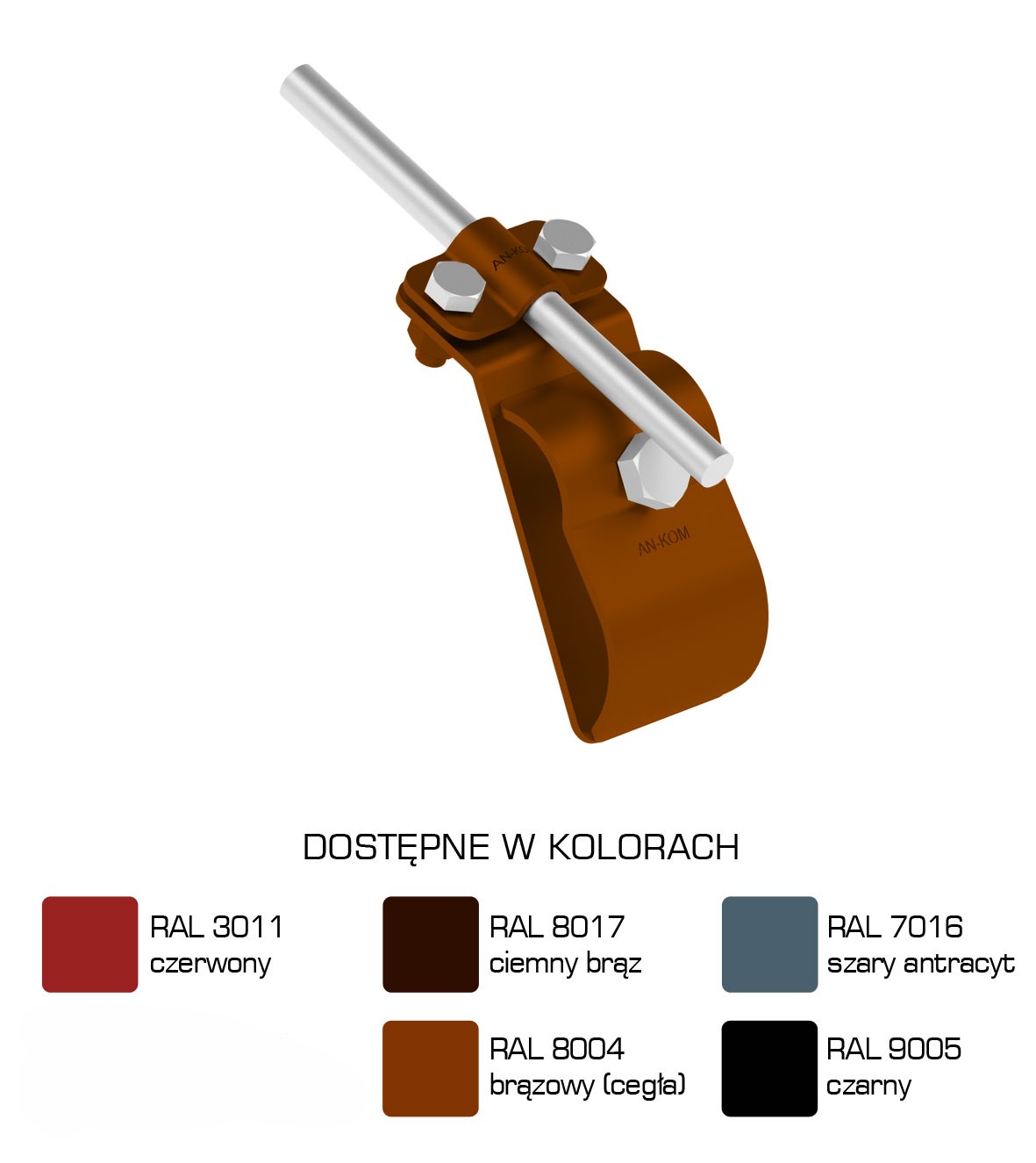 Uchwyt pozwala stabilizować przewód odgromowy przy przejściu nad rynną okapową.