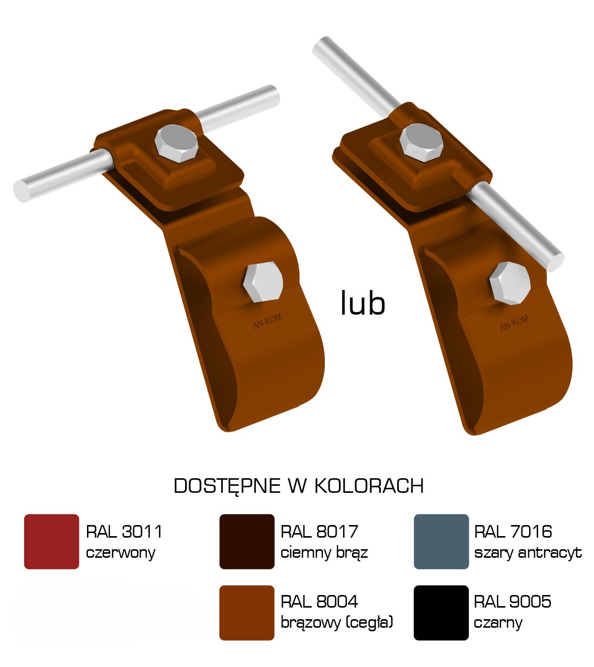 Uchwyt pozwala stabilizować przewód odgromowy przy przejściu nad rynną okapową.