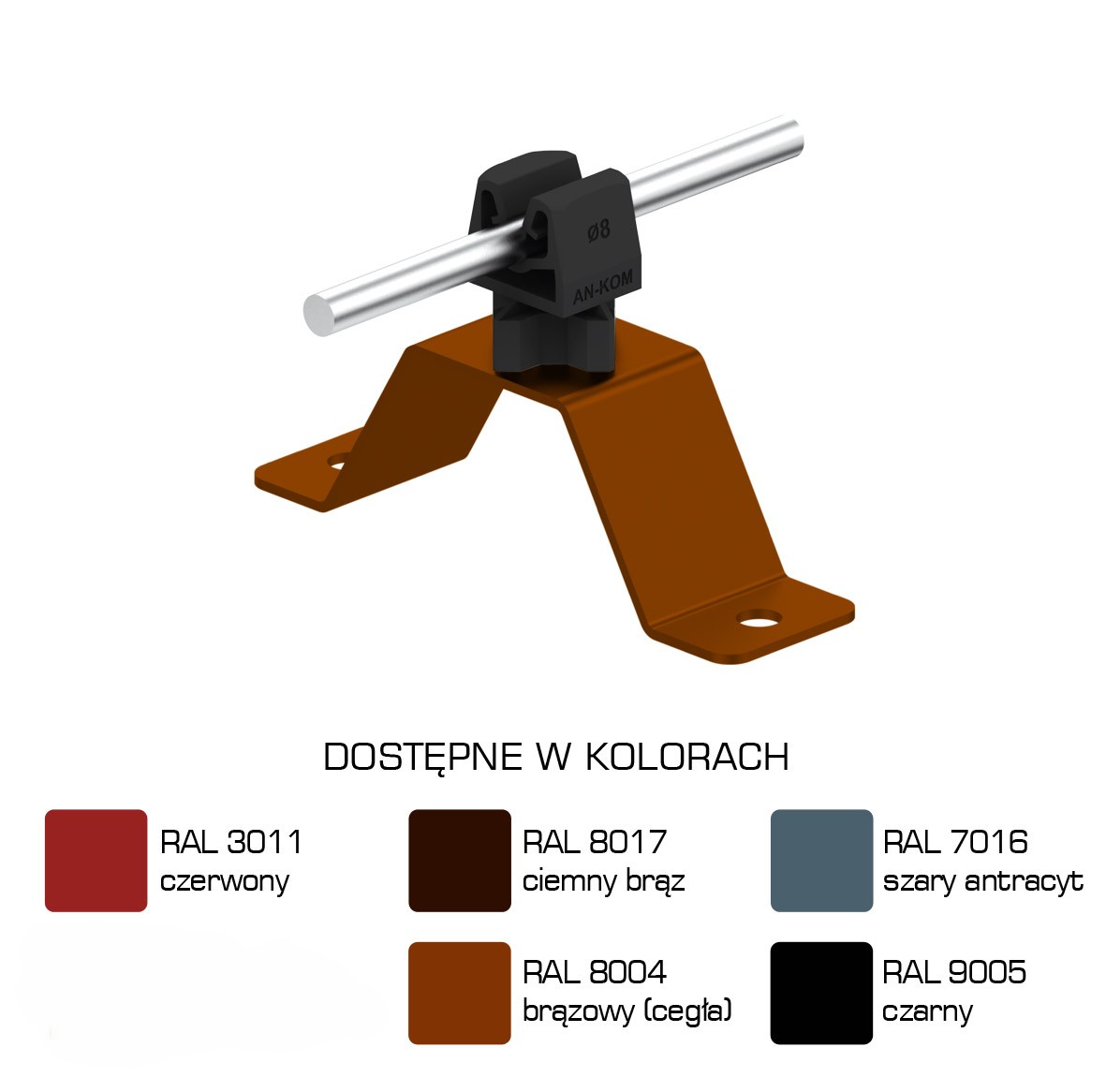 Uchwyt uniwersalny do prowadzenia przewodu odgromowego na dachu pokrytym blachą, papą, gontem.
