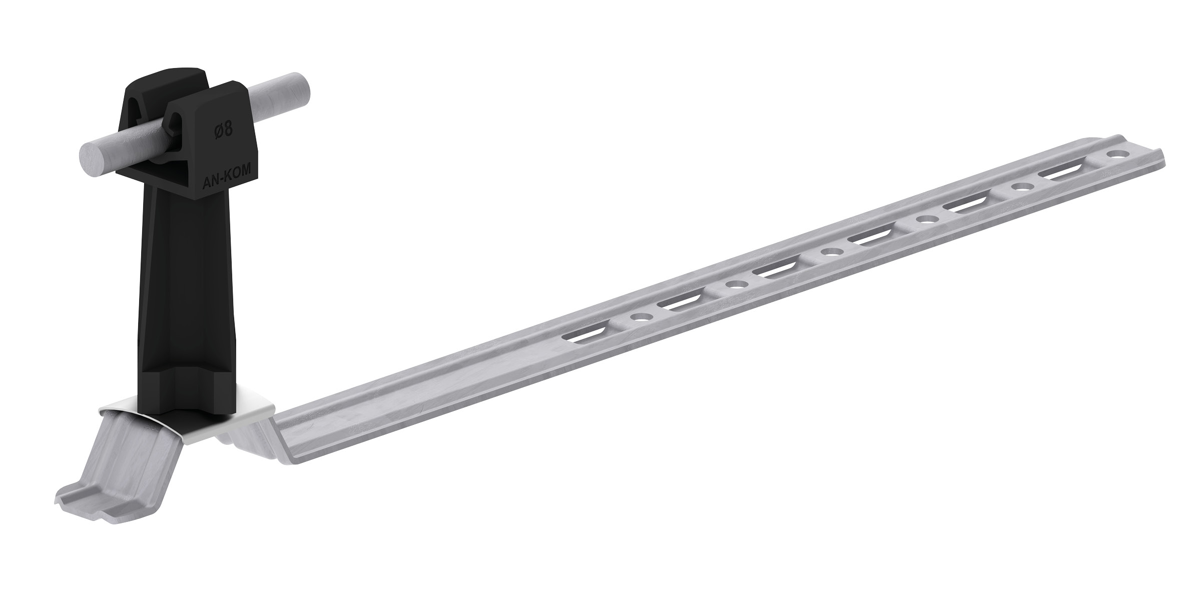 Uchwyt dachówkowy – regulowany służy do budowy zwodów i przewodów odgromowych na dachu wszerz lub wzdłuż dachówki. Montaż uchwytu odbywa się poprzez odgięcie ząbka i wsunięcie uchwytu pomiędzy dachówki lub przykręcenie wkrętami do łaty przez otwory montażowe.